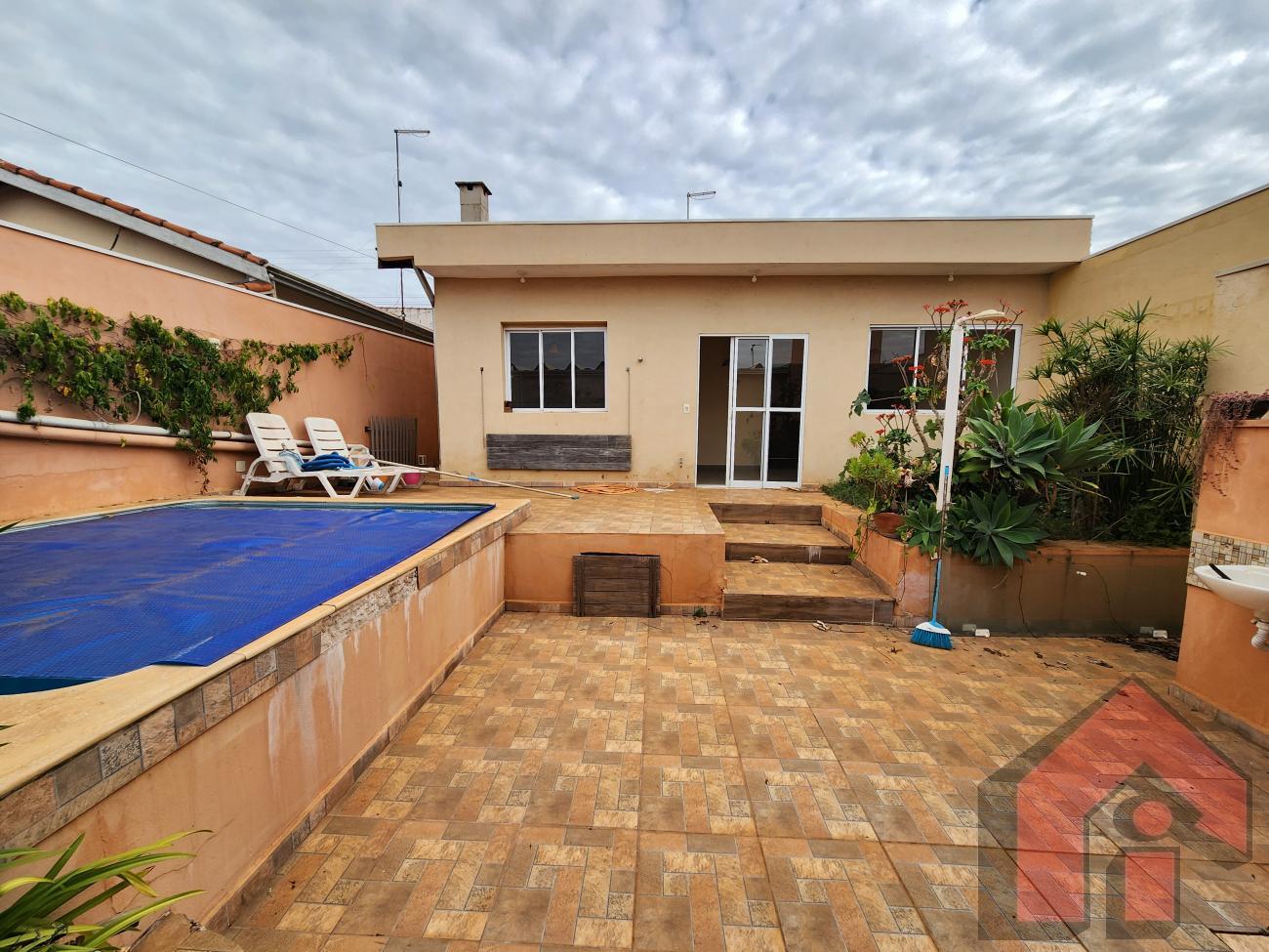 casa na frente, com garagem, quarto, sala, cozinha e banheiro piscina e quintal entre a casa da frente e casa dos fundos, e casa nos fundos com suíte com closet, duas salas e cozinha excelente localização.