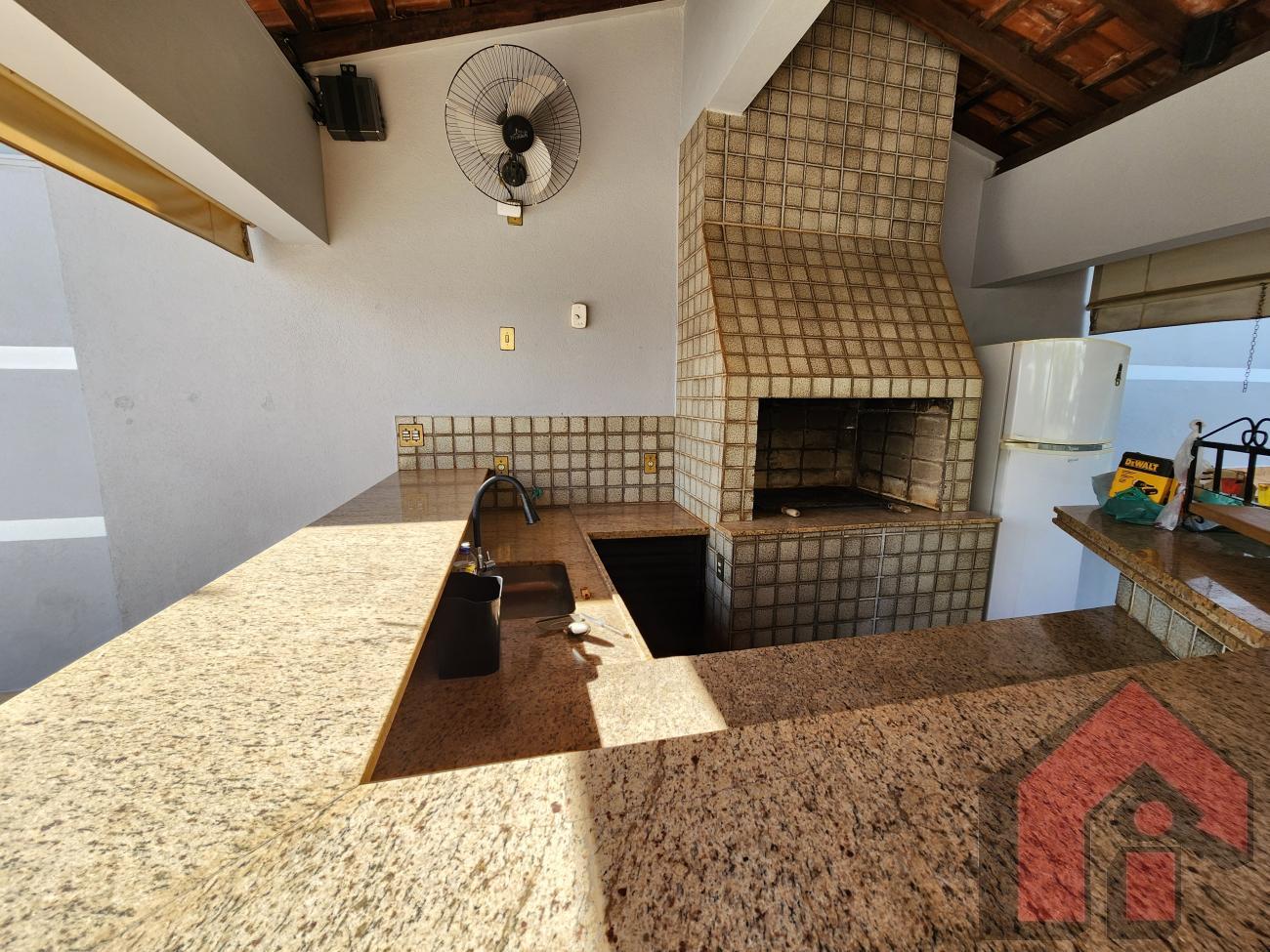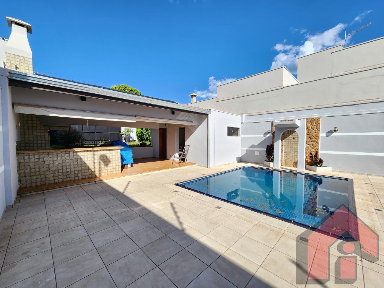 3 dormitórios, sendo 1 suíte, banheiro social, lavabo, 3 salas amplas, cozinha com armários e despensa, com garagem para dois autos e entrada para outra rua com capacidade de garagem para mais carros, entrada independente para área de lazer com escritório, piscina, churrasqueira, sauna e banheiro.